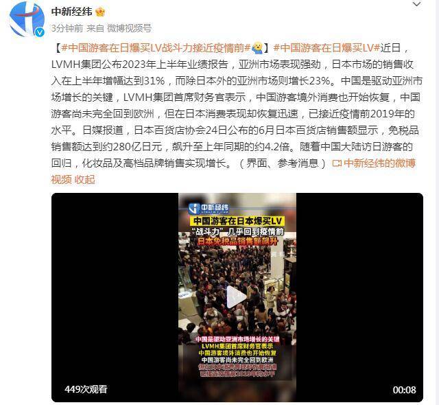 近日,赴日本旅游的中國游客買爆日本高奢品牌LV,消費(fèi)水平重回2019年水平!