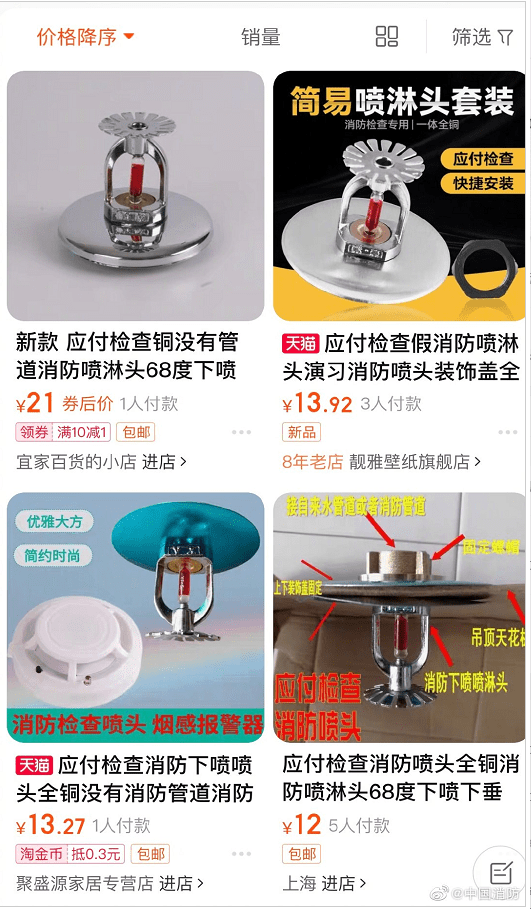 淘寶、京東和拼多多平臺上多家店鋪因售賣名為“應付檢查假消防噴淋頭”的物品而被中國消防點名,這樣的事件出現是意外嗎?事實上根本不是意外,為什么說不是意外呢?很多虛假偽劣產品在網絡銷售平臺是經常出現的,今天出現了消防用品是假冒偽劣的,其實也不是存在一天了。