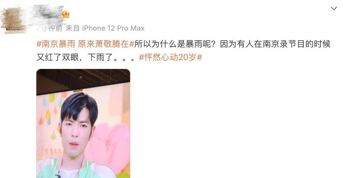 蕭敬騰的“雨神”人設(shè)真的屹立不倒,今天很多人吐槽南京狂風(fēng)暴雨,心情比較煩躁,結(jié)果有網(wǎng)友播出蕭敬騰的行程,好家伙蕭敬騰竟然在南京錄《怦然心動(dòng)20歲3》,還說錄節(jié)目的時(shí)候又紅了雙眼,下雨了,天吶!誰能想到娛樂圈最離譜的人設(shè)竟然到現(xiàn)在也沒有崩。