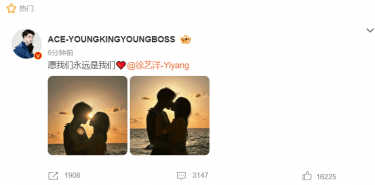 甜蜜暴擊!黃子韜徐藝洋正式官宣:愿我們永遠是我們
