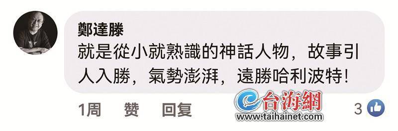 上周,海峽導(dǎo)報(bào)在臉書(shū)發(fā)布“小調(diào)查:臺(tái)灣人眼中的哪吒是怎樣的呢?”帖文下收到近千條臺(tái)灣網(wǎng)友的點(diǎn)贊與留言。有人分享說(shuō):“今天剛看了,好看!”“都是從小就熟知的神話人物,故事引人入勝,氣勢(shì)澎湃,遠(yuǎn)勝《哈利波特》!”也有人模仿劇中臺(tái)詞評(píng)論:“我命由我不由天,老子成魔又如何?”