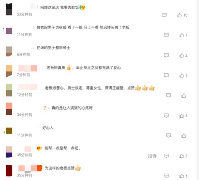 網(wǎng)友紛紛為老板娘點(diǎn)贊,同時(shí)也稱這幾個(gè)吃飯大哥也做到了非禮勿視。