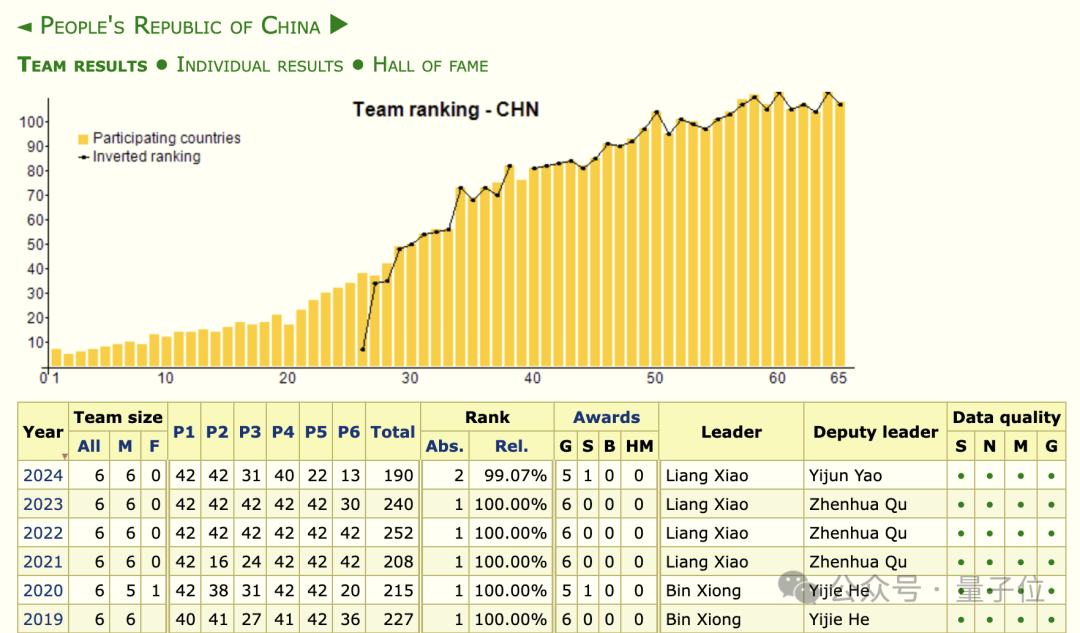 中國隊共計在IMO上拿下過24次第一;過去連續5年,中國隊都坐上了團體冠軍的寶座,堪比乒乓球一樣的統治力。