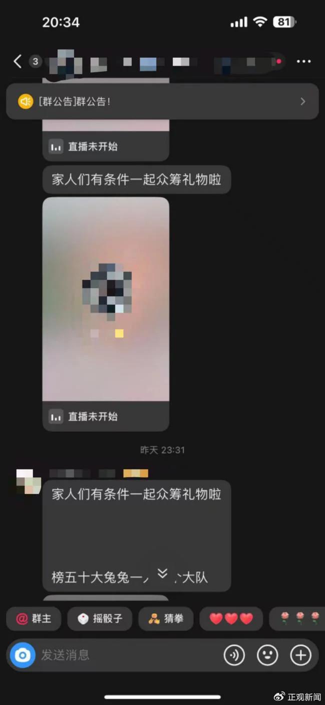 " 他們的直播每次都是一個團隊的 3、4 個人在那里 PK,故意營造一種很緊張的氛圍,主播會說自己還缺某一個禮物,鼓動粉絲去刷禮物,另一方面在粉絲群里,管理員會艾特群成員喊話粉絲回護主播。" 阿黎解釋說,翻看父親手機后她發現,每次父親刷禮物主播會私信回復 " 感謝大哥的支持 " 并且時不時找父親聊天," 維護 " 感情。