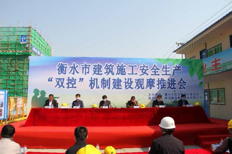 近日,河北建設集團股份有限公司衡水分公司作為衡水市“雙控”機制建設試點單位,在其施工的北斗創業園項目現場,成功舉行了衡水市建筑施工安全“雙控”機制建設觀摩推進會。衡水市應急管理局、市住建局有關領導,13個縣、區建設局主管局長、安監站長,全市在建項目的建設單位、施工單位、監理單位等主要負責人,共計400余人參加了觀摩會。